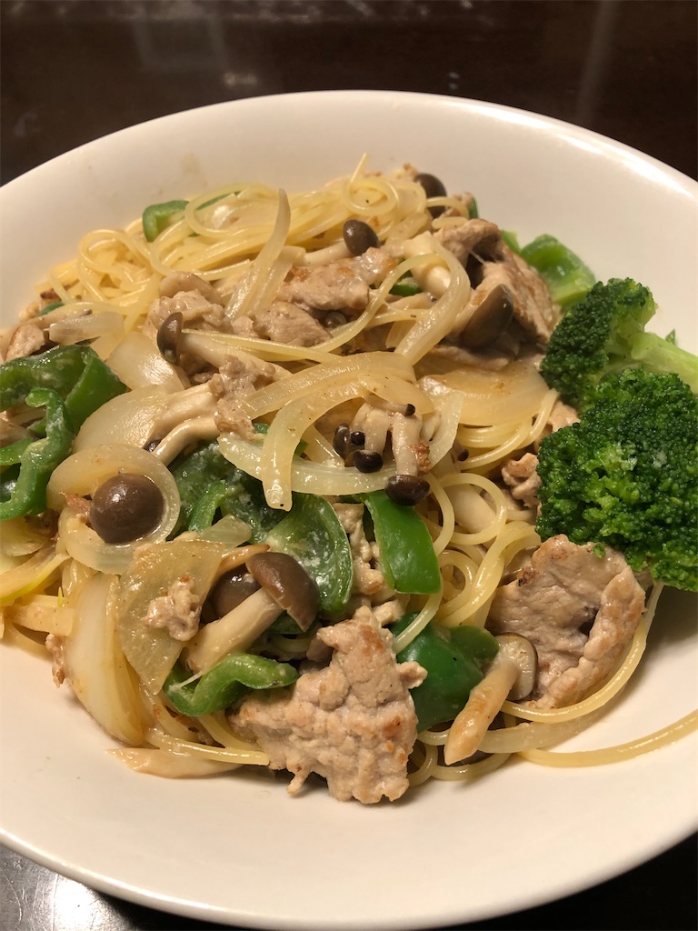 ・茹でたスパゲッティとブロッコリーを加えて完成。