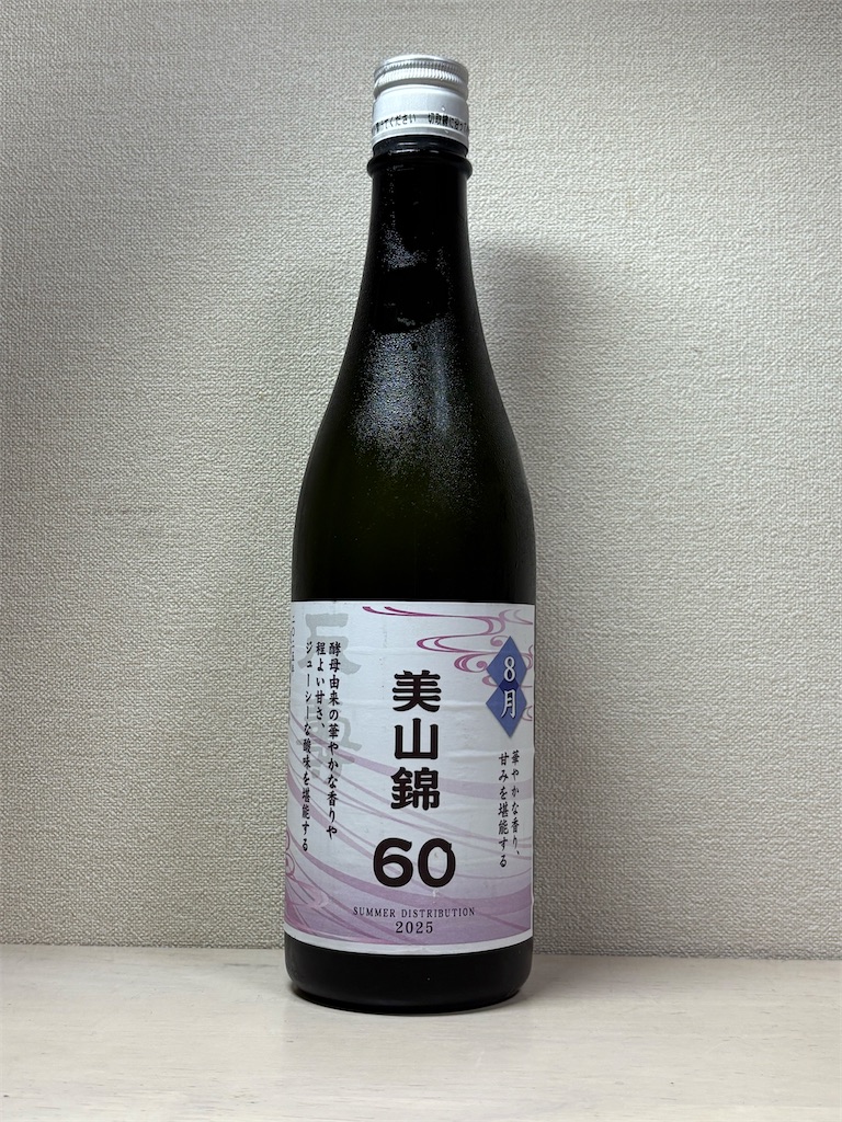 秋田県天寿酒造の天寿美山錦60です。精米歩合は60%、アルコール度数は15度、美山錦100%となっています。